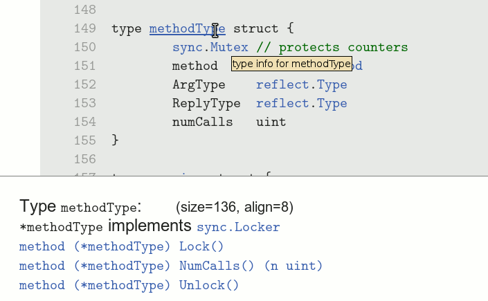 Godoc annotates every channel operation—make, send, range, receive, close—with a link to a panel displaying information about other operations that might alias the same channel.